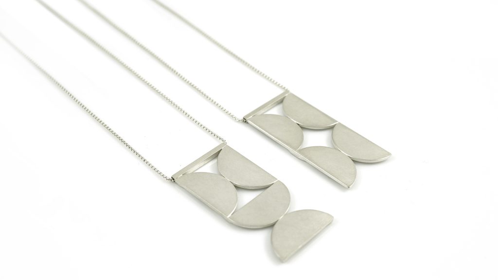 Sich punktuell berührende Kreise und ihre Zwischenräume. Ein Spiel mit geometrischen Formen.
