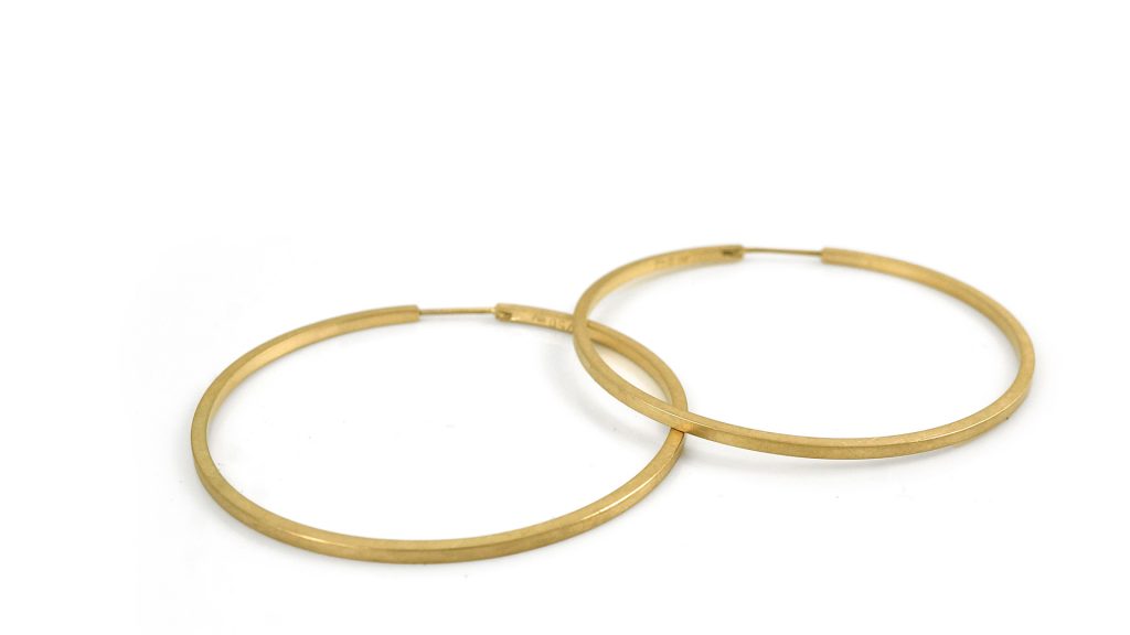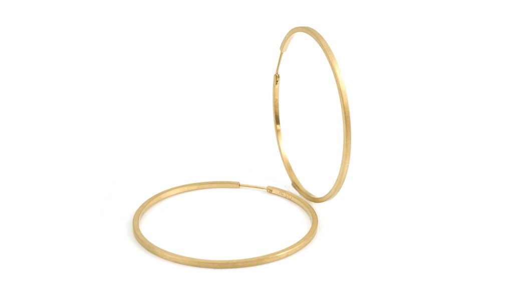 Creolen - ein Klassiker aus Vierkant. Diese Creolen haben einen Durchmesser von 40 mm.