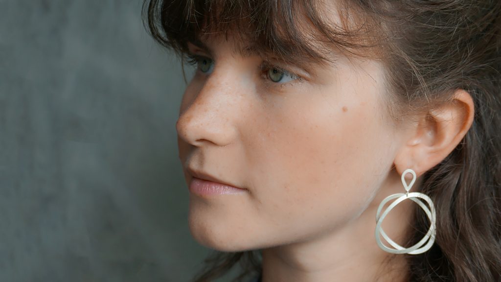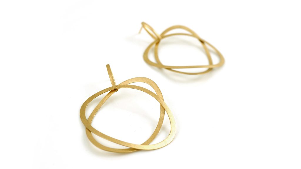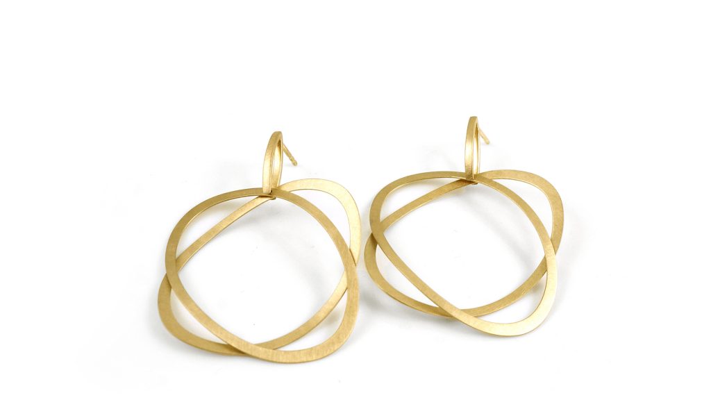 Die Ohrhänger Touch sind groß und zart zugleich. Die leicht gebogenen Ovale schmiegen sich ineinander und berühren sich immer wieder ganz leicht bei jeder Bewegung.